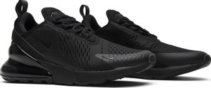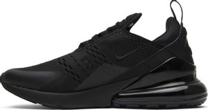 The Air Max 270 Triple Black is a sleek and modern sneaker. It features a black mesh and synthetic upper with matching black branding, laces, and midsole. The shoe also has a large Air Max unit in the heel, providing excellent cushioning and support. With its all-black colorway and comfortable fit, this sneaker is perfect for any occasion.