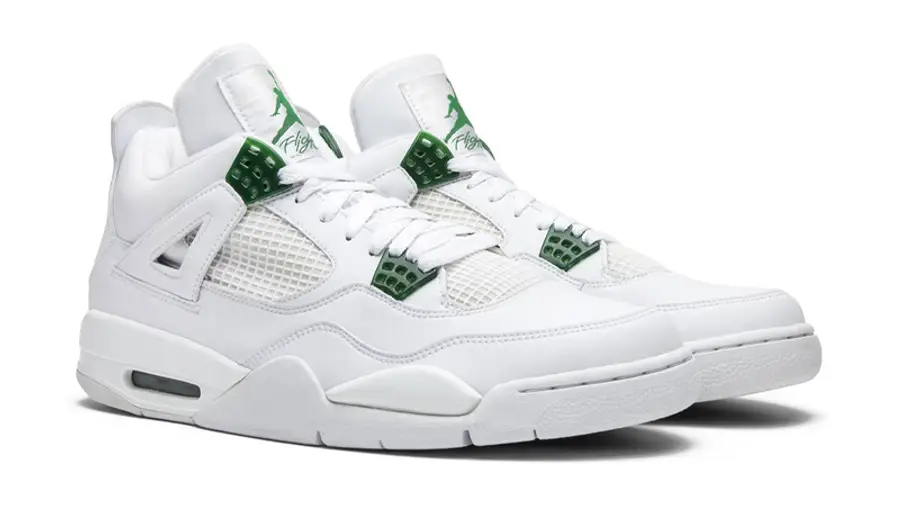 The Jordan 4 Metallic Green is a sleek and stylish design that combines form and function. The metallic green leather upper is accented by black detailing and the iconic Nike Air logo, making these sneakers a must-have for any sneakerhead.